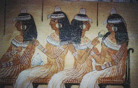 エジプトの壁画。頭に載せているのが香のついた油。